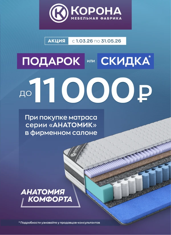 При покупке любого матраса из коллекции «Анатомик» вас ждет специальное предложение: